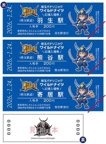 ・埼玉パナソニックワイルドナイツ公式キャラクターをデザインしたD型硬券入場券(77×50mm)